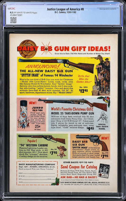 JUSTICE LEAGUE OF AMERICA #8 CGC 4.5 DC COMICS 1961