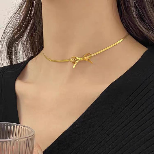 Design Side Bow Blade Chain Titanium High Grade Stainless Steel Necklace