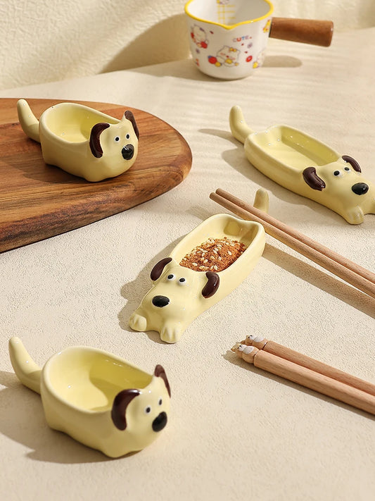 Cute Pet Cartoon Ceramic Gravy Boat – Japanese Style Rabbit & Dog Porcelain Dish