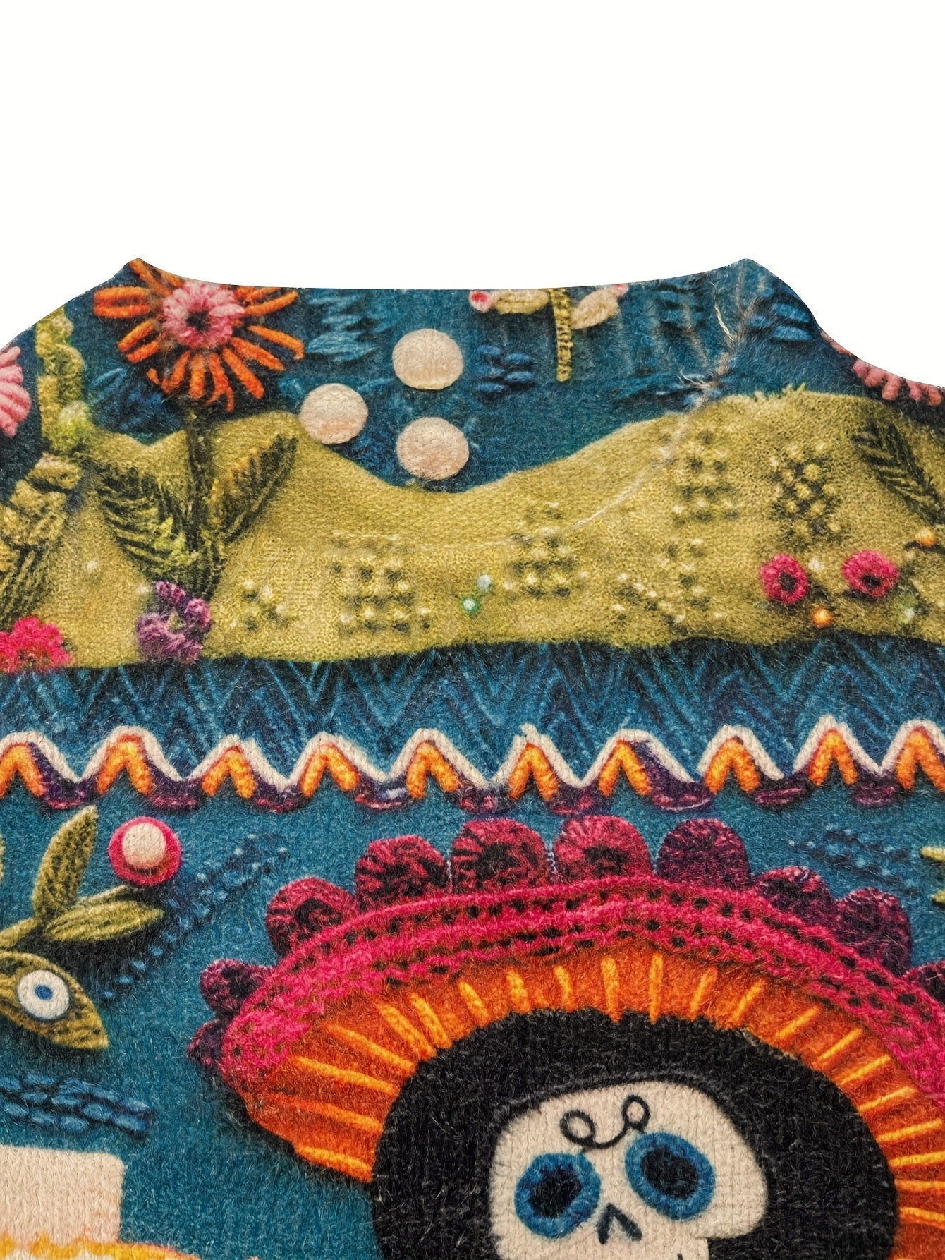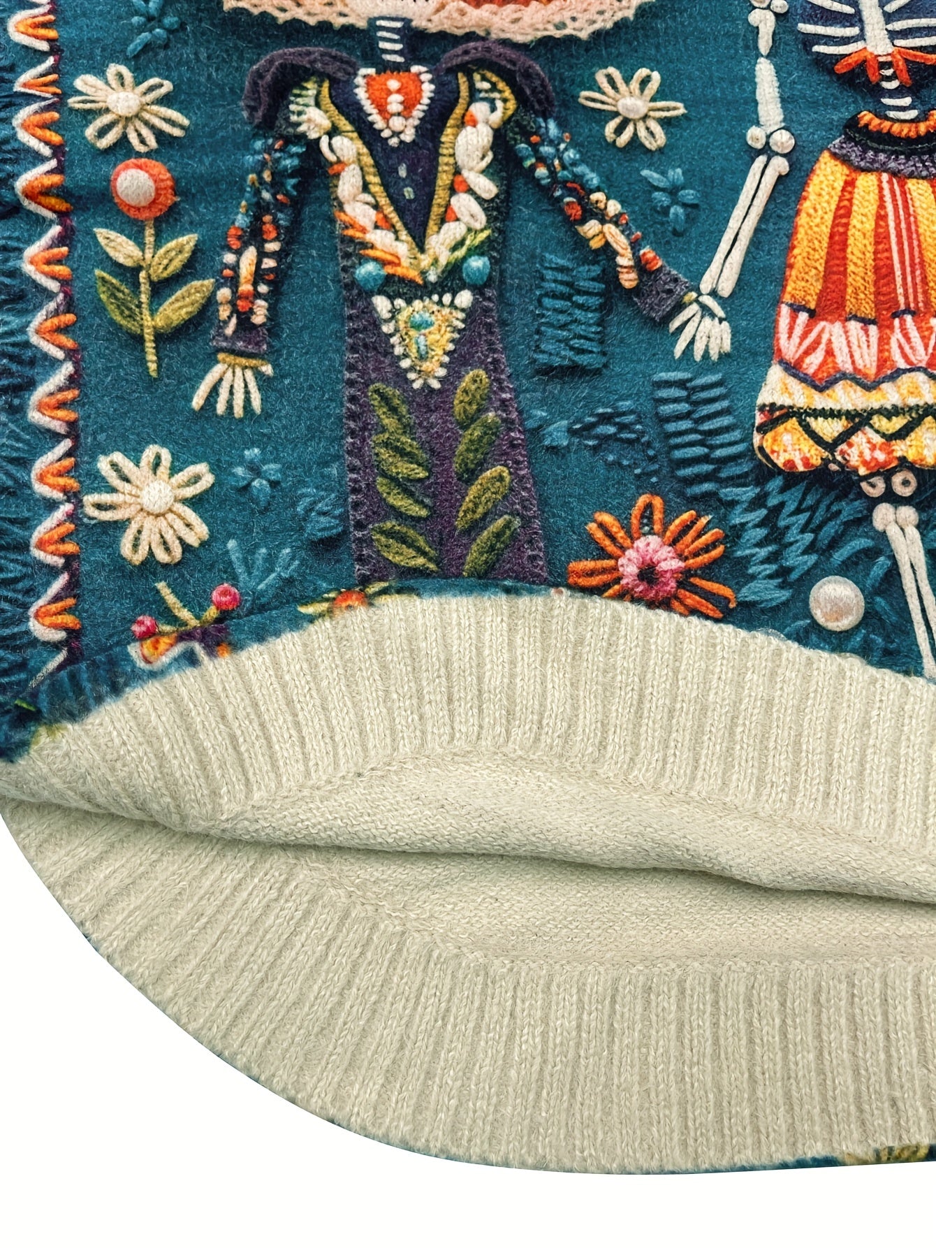 All-Over Print Undead Couple Pattern Thick Casual Crew Neck Long Sleeve Sweater, Round Hem, Women's Clothing