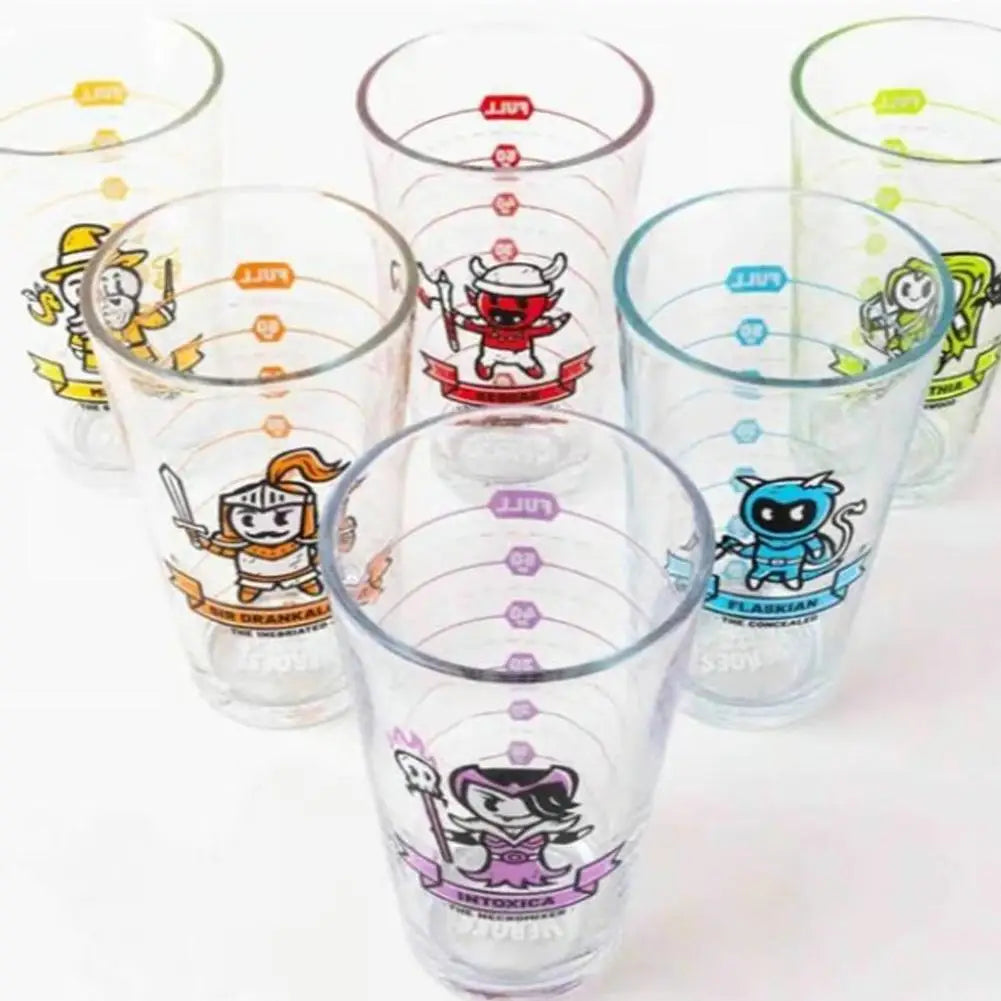 Complete Setup Included: 6 glitter 20-sided dice, waterproof cards, rulebook, and 6 dishwasher-safe character cups are all included.