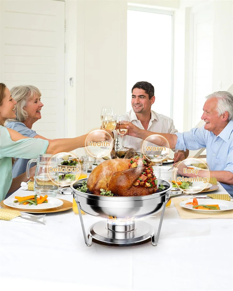 5QT Stainless Steel Chafing Dish Buffet Set – Round with Lid & Warmers for Party