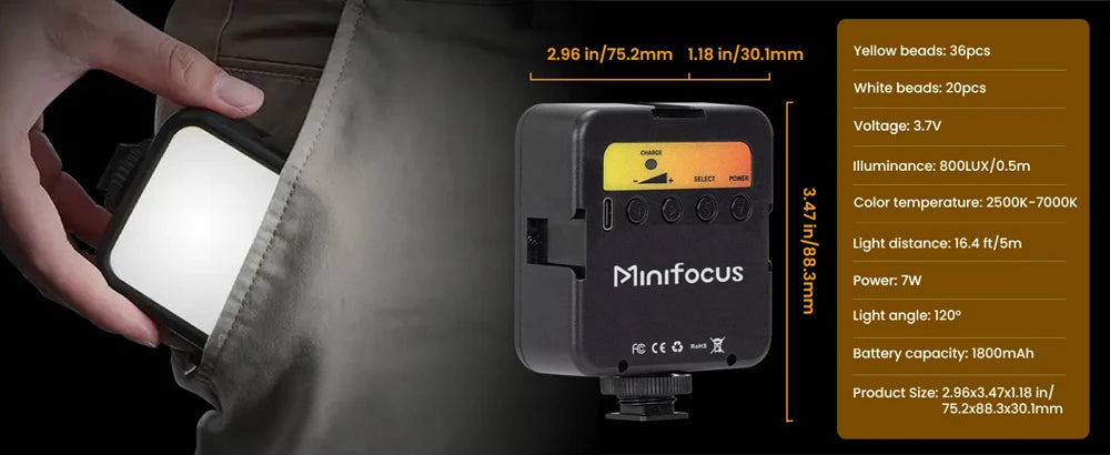 Portable & Lightweight: Weighs only 4.8 oz with compact dimensions of 2.96 × 3.48 × 1.18 inches, ideal for on-the-go filming.