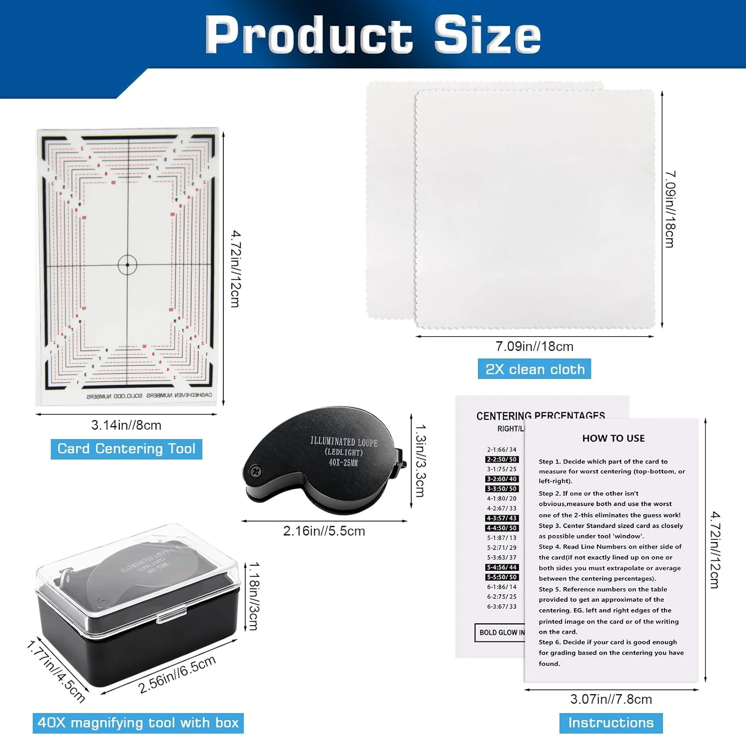 Complete Kit: Includes card holders, centering guides, sticky notes, and a 10×21mm triplet loupe for detailed inspection.